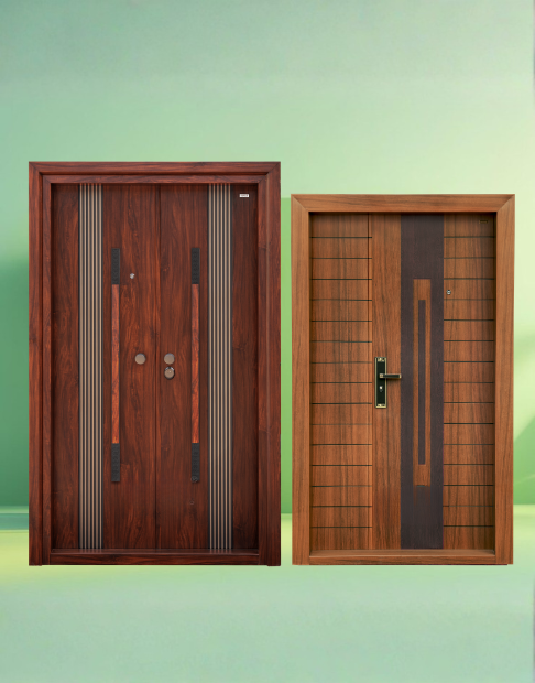 We offer high-quality wooden-finish steel doors for Main entrances, bedrooms, balcony and terrace with superior strength, durability and elegant design.